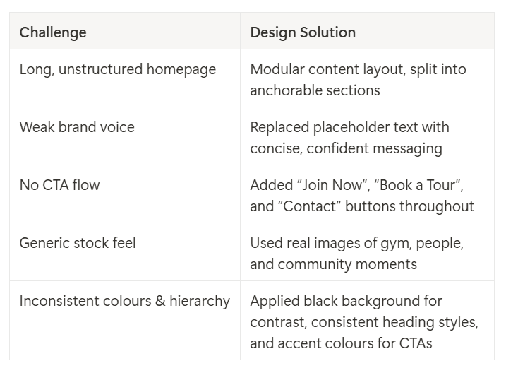 Scully Fitness, a community-based gym in Galway, approached me to redesign their outdated website. The main goal: increase gym signups and encourage visitors to stay longer on the site. The original site was cluttered, long-scrolling, and failed to communicate the gym’s modern vibe or unique community feel. I restructured the website to present key information—like pricing, services, and team—through clear sections and intuitive navigation. The new design uses focused calls-to-action and real gym visuals to build trust and guide users toward signing up with ease. Let's dive into how I went about this